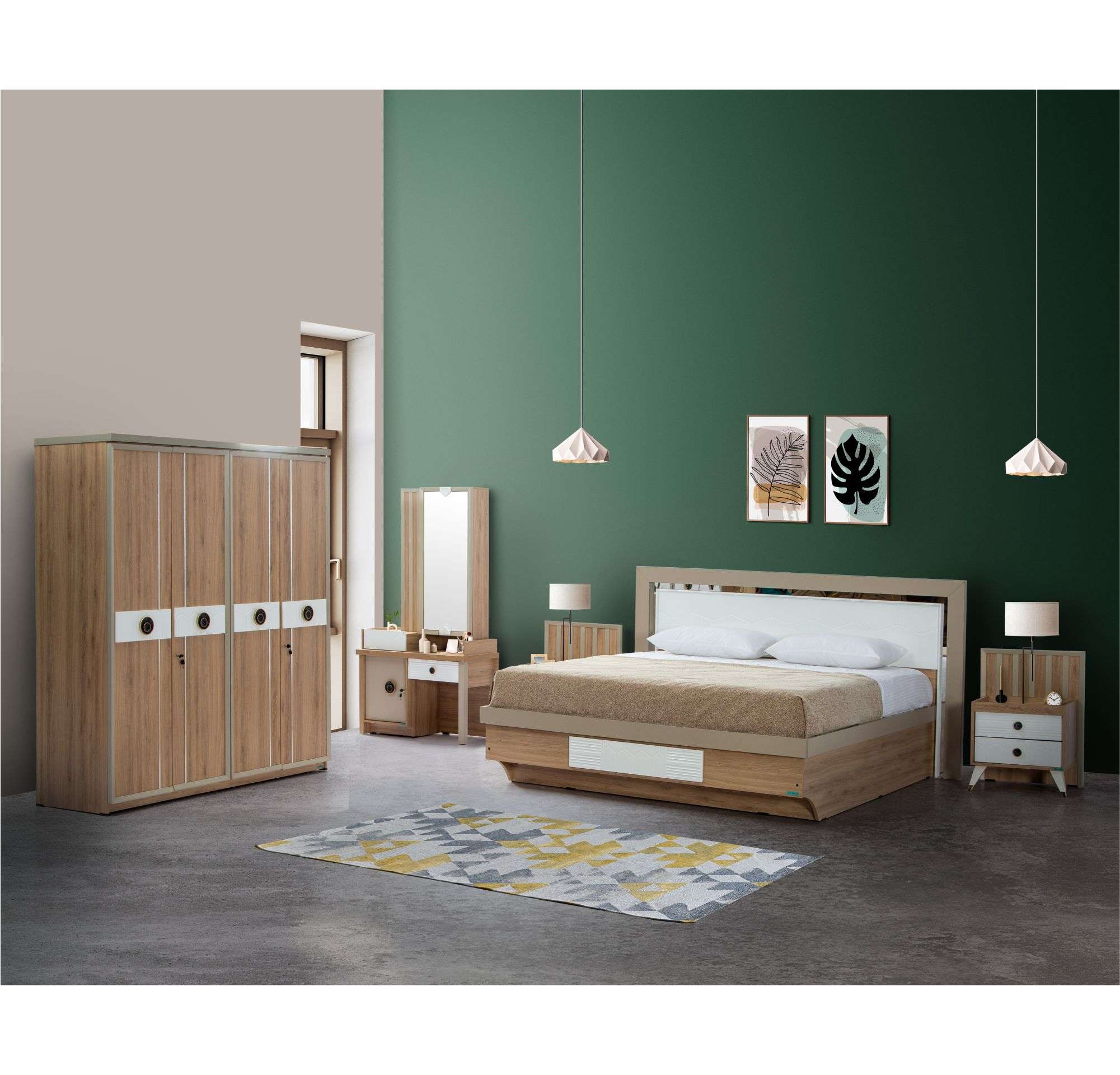 Do you want to add a premium look to your bedroom with contemporary bedroom furniture sets? Then the Angela Bedroom Set is an ideal choice! It is a blend of modern two-tone design and the latest, high-quality materials. The set includes an attractive queen-size bed, a spacious 4-door wardrobe, a dressing table with mirror and a Bedside Table for your night time convenience. The Angela set accentuates all kinds of environments and offers a rich feel without compromising functionality.