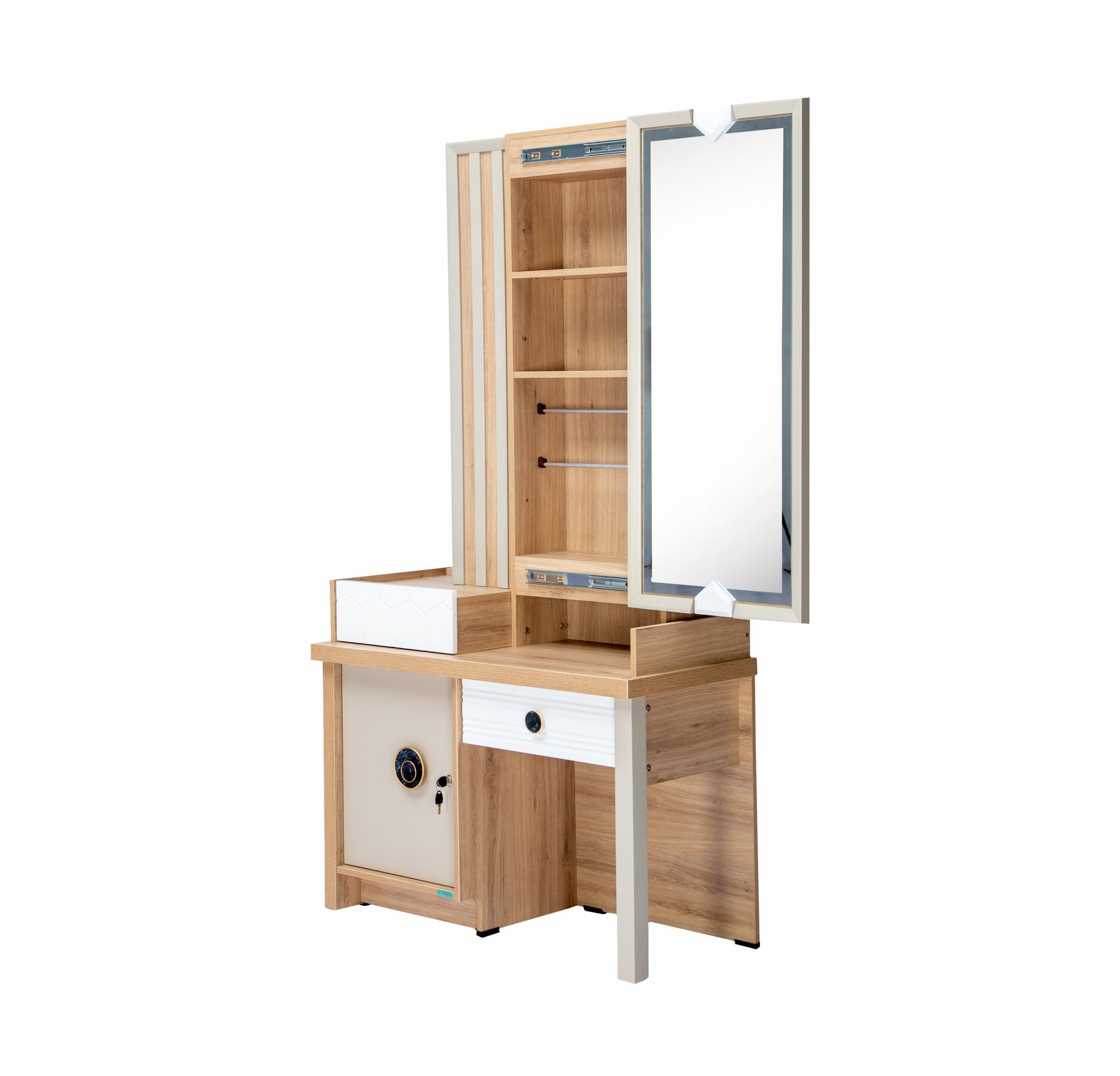 • Sliding door mirror storage with shelves and bangle holder