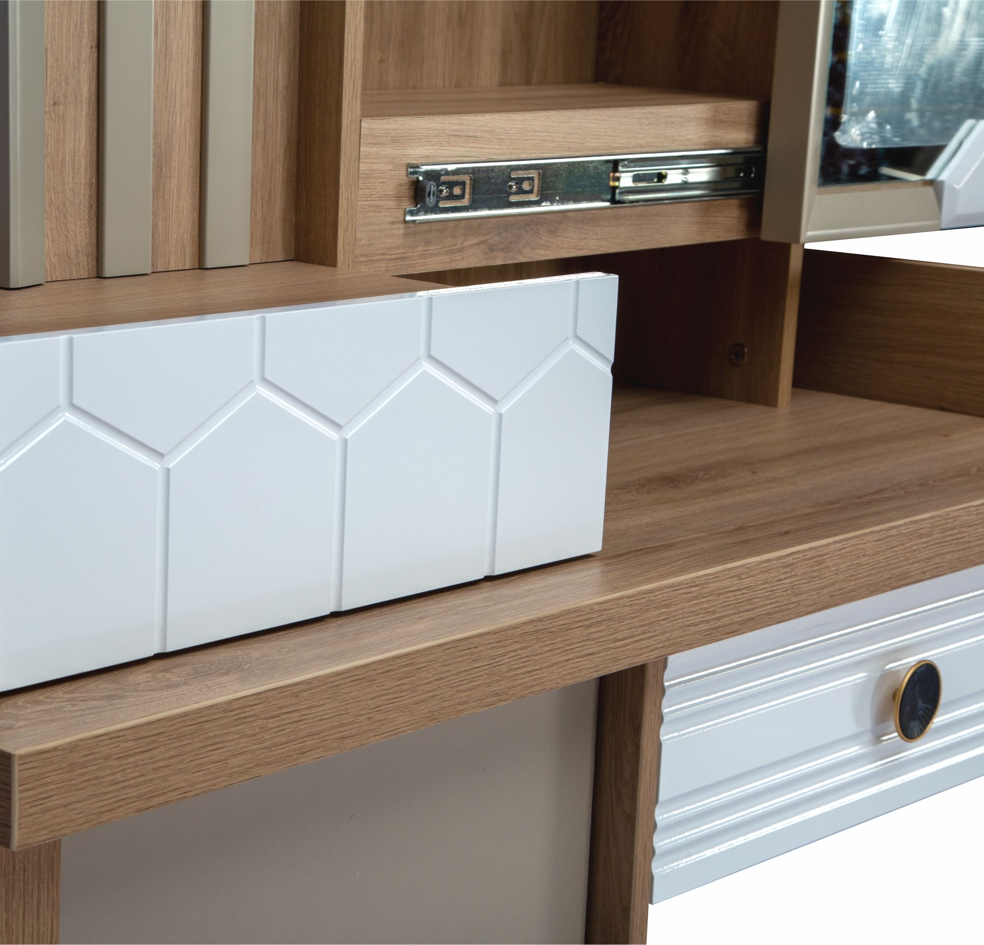 • Decorative designs on the drawer front