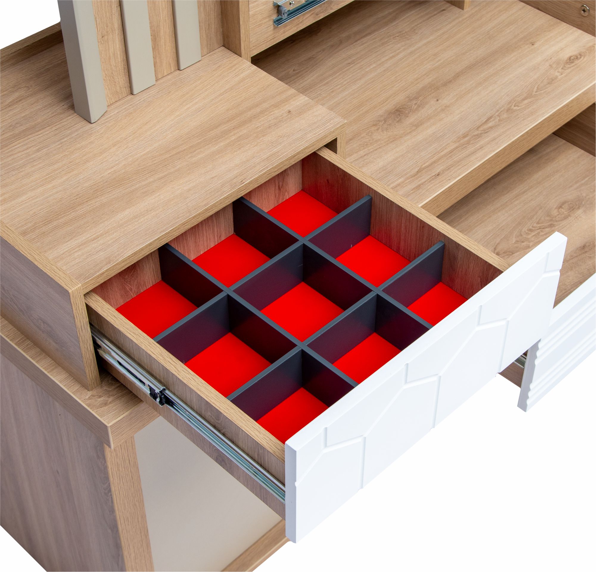 • Drawer with organizing partition strips on the tabletop
