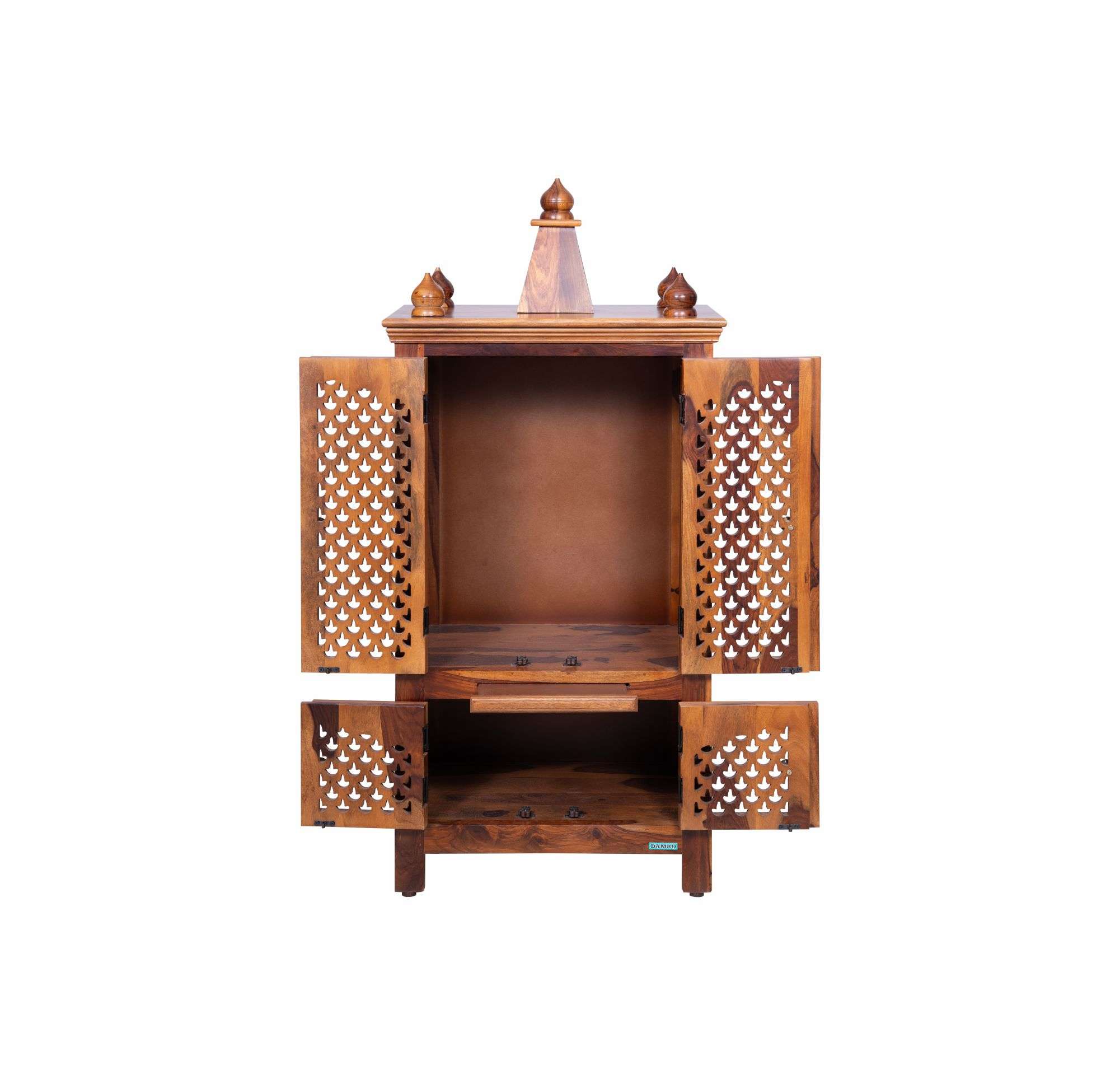 - Pull-out tray to house pooja essentials