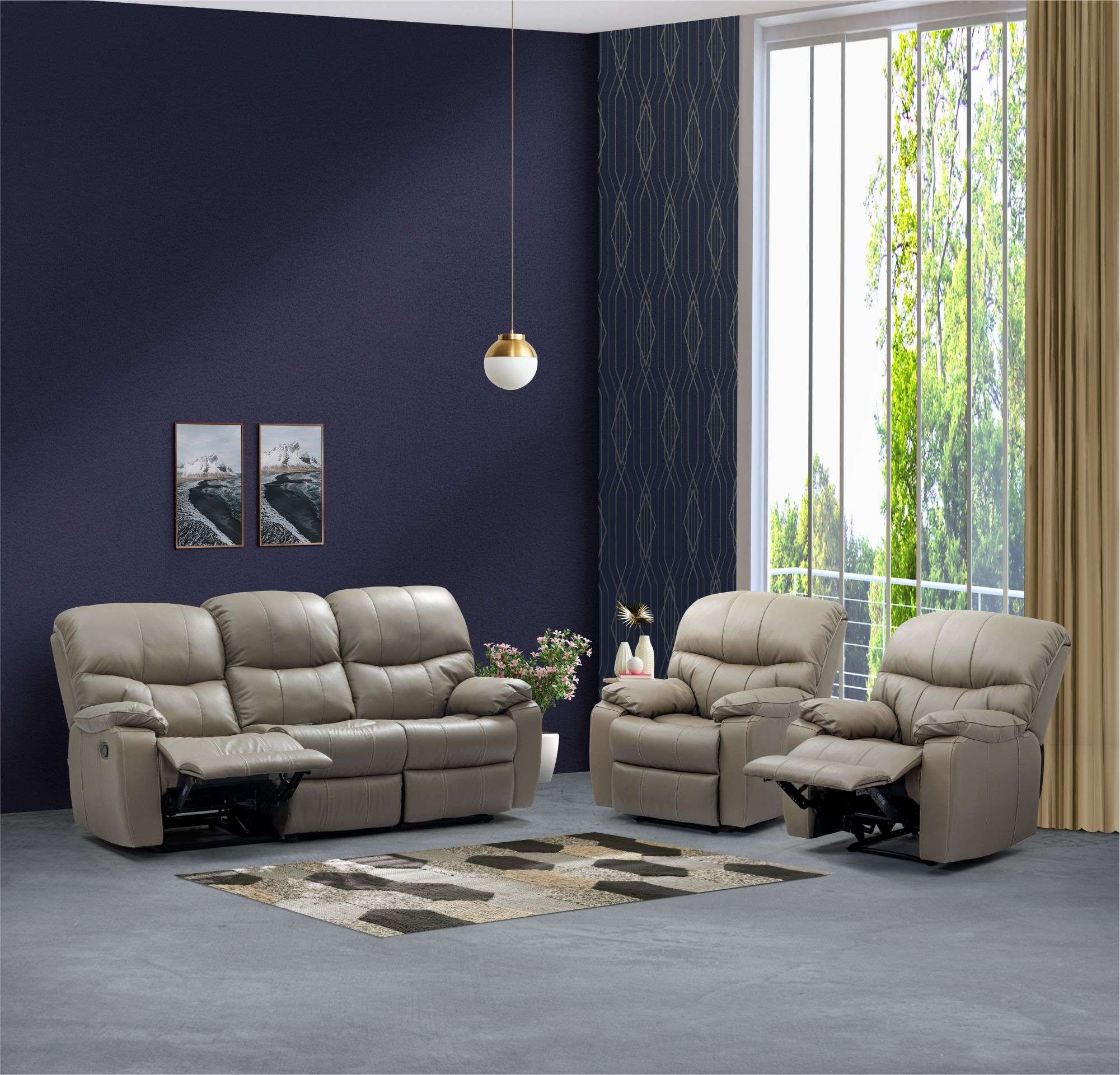 - Includes a three-seater and two single-seater leather recliners