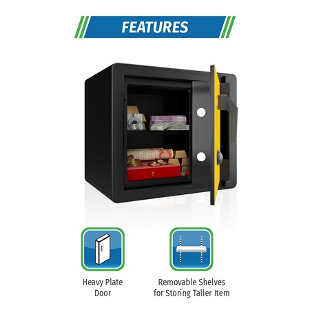 Heavy plate doorTwin solid steel shooting bolts for extra protectionSafe comes with Gordian lock that opens with two keys (Manual variant only)Stylised & convenient new handle