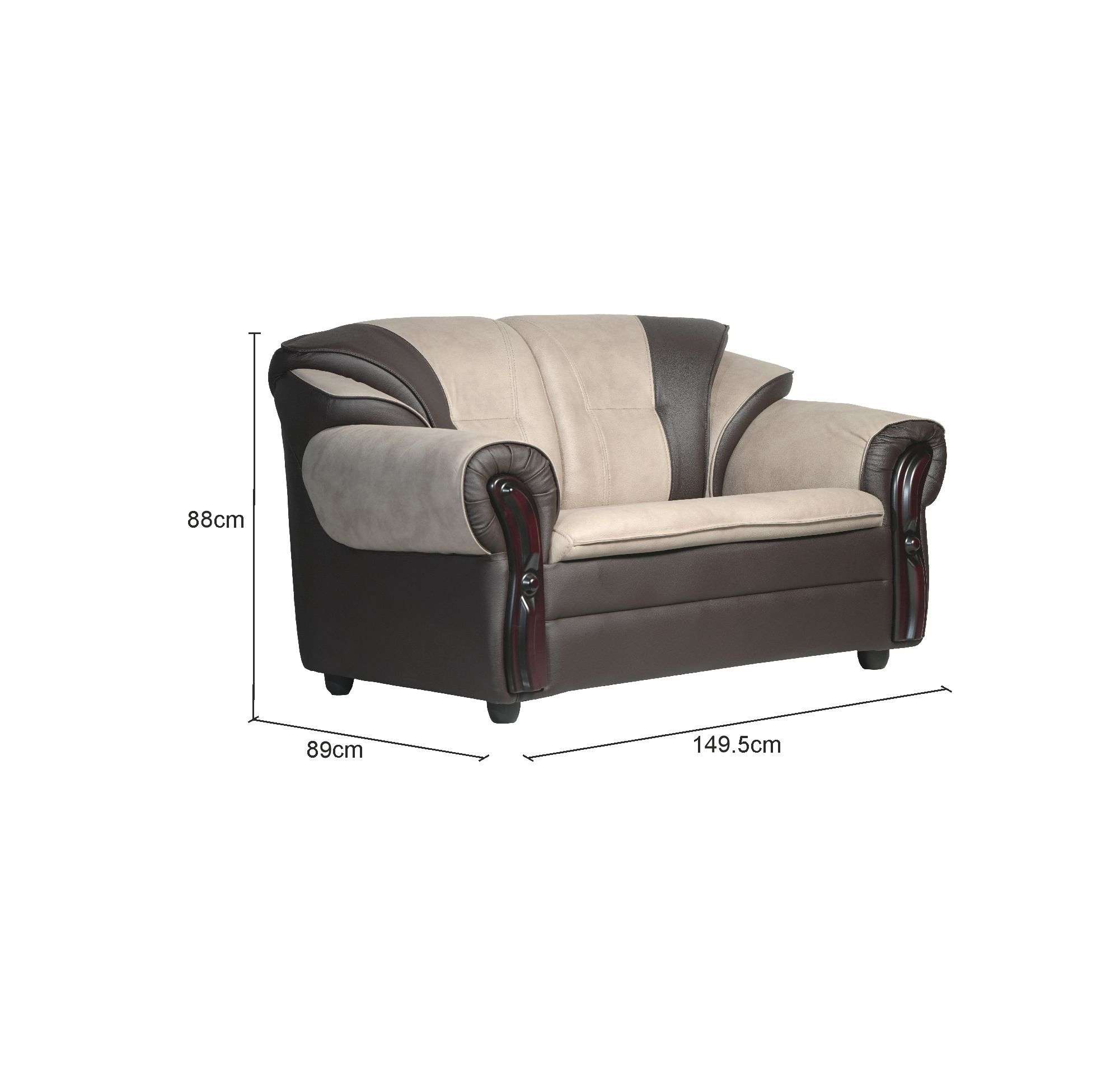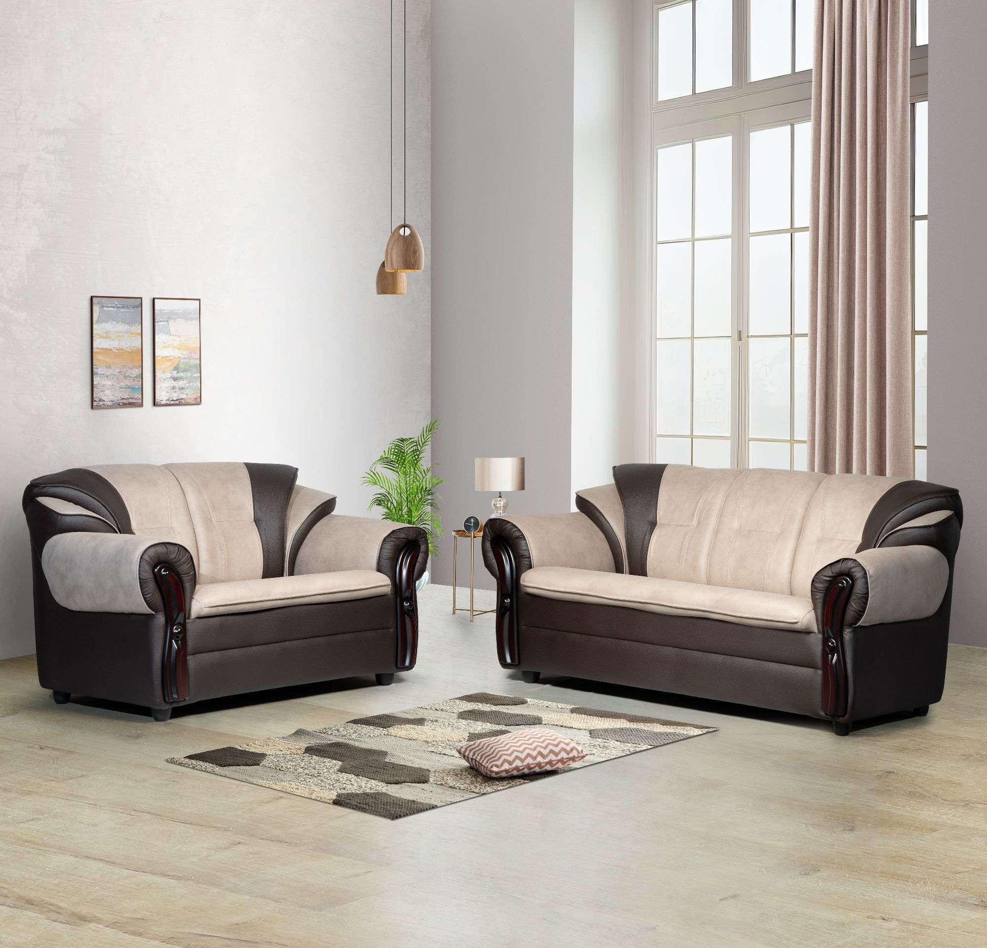 Primary Material : Treated Solid Wood, Webbing, High Density PU Foam, Upholstery Fabric & Leatherette