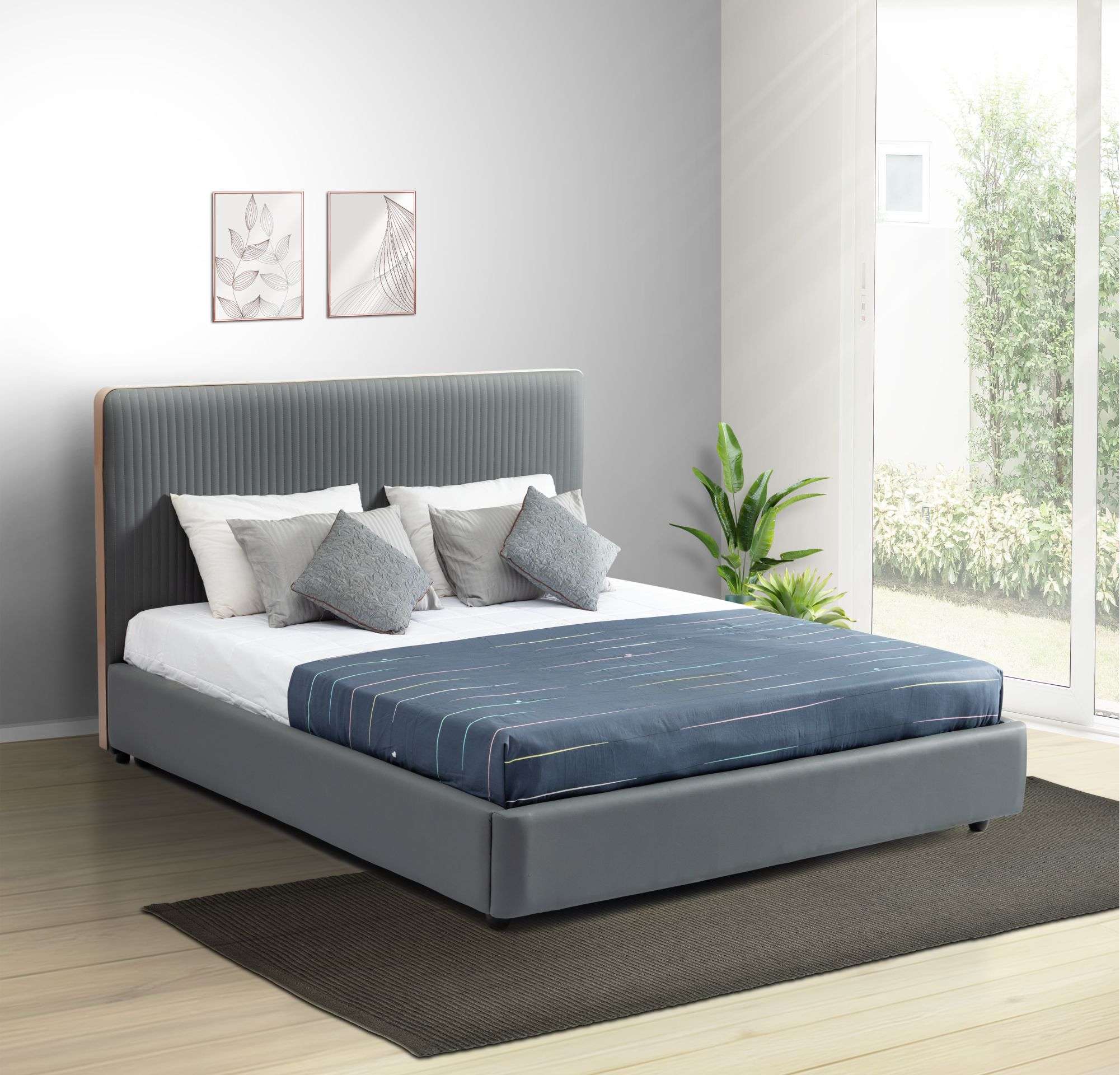 Experience enduring support with our Kylee Upholstered King Size Bed, Crafted with a sturdy engineered wood structure and reinforced with painted steel. this bed ensures long-lasting support. The rexin upholstery delivers a comfortable and inviting surface for a cozy night’s sleep, while the plastic legs provide stability. Transform your sleeping space with our reliable and stylish King Size Bed.