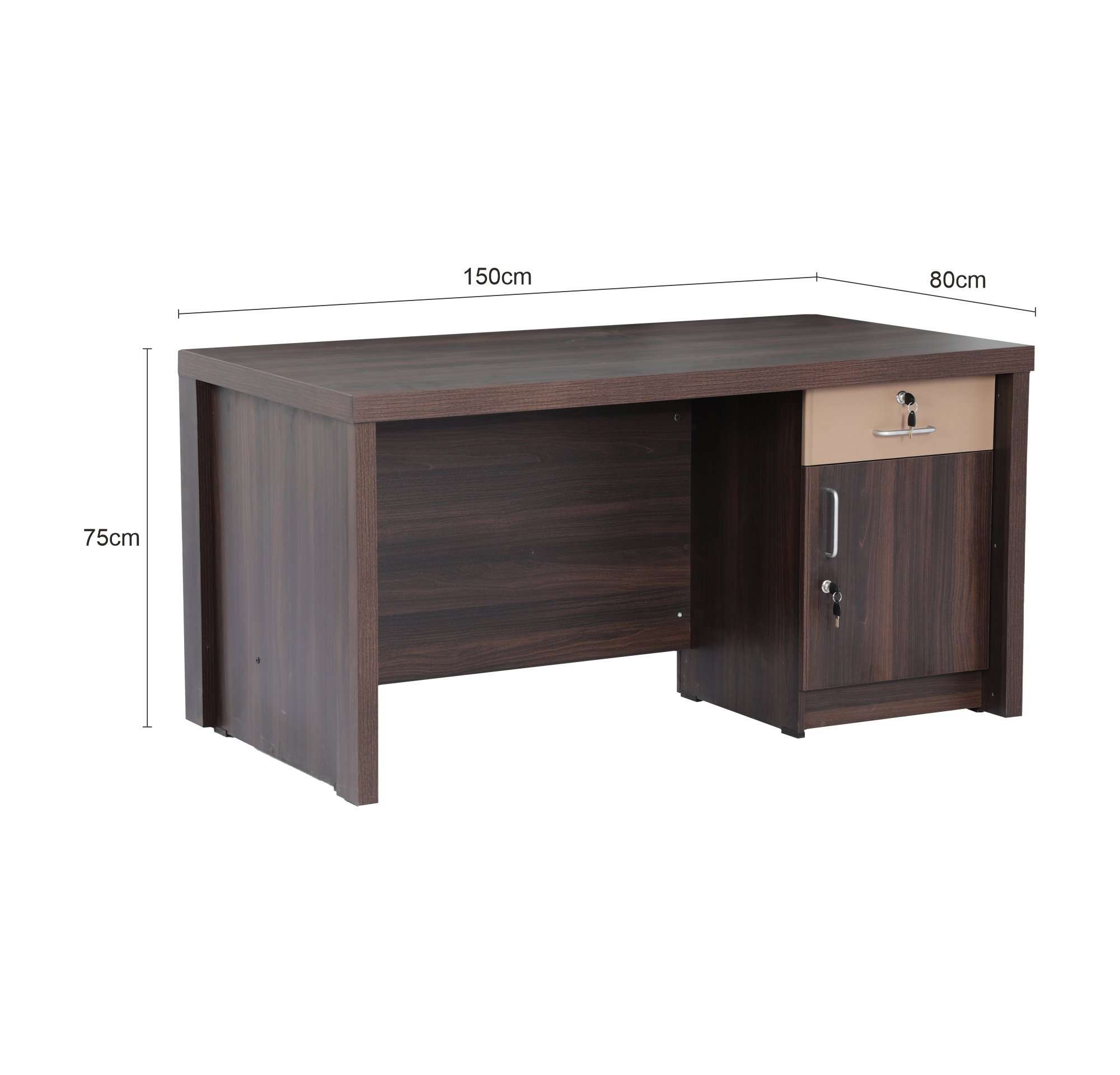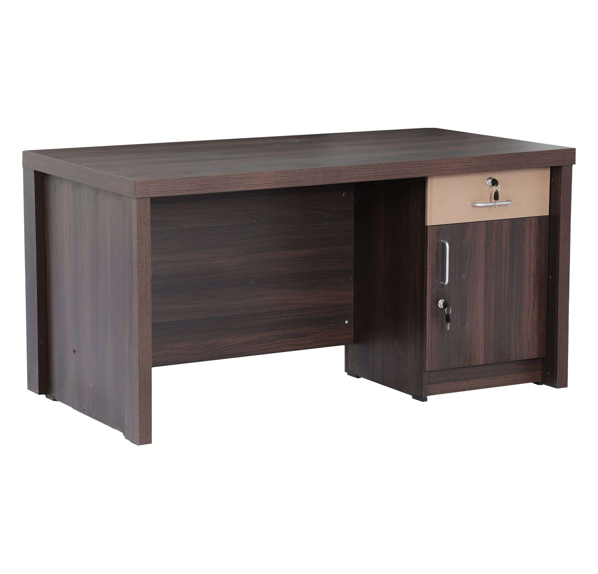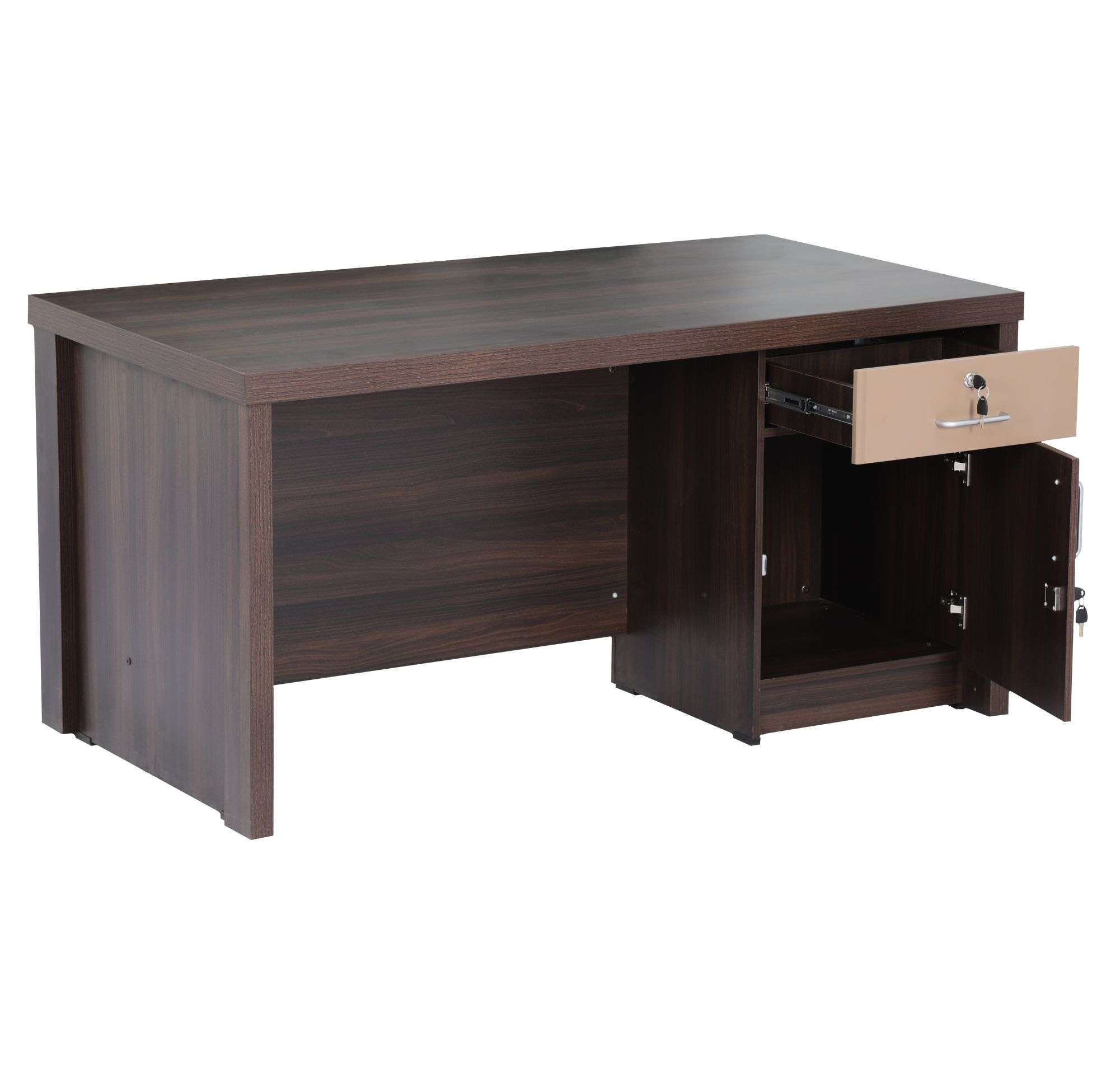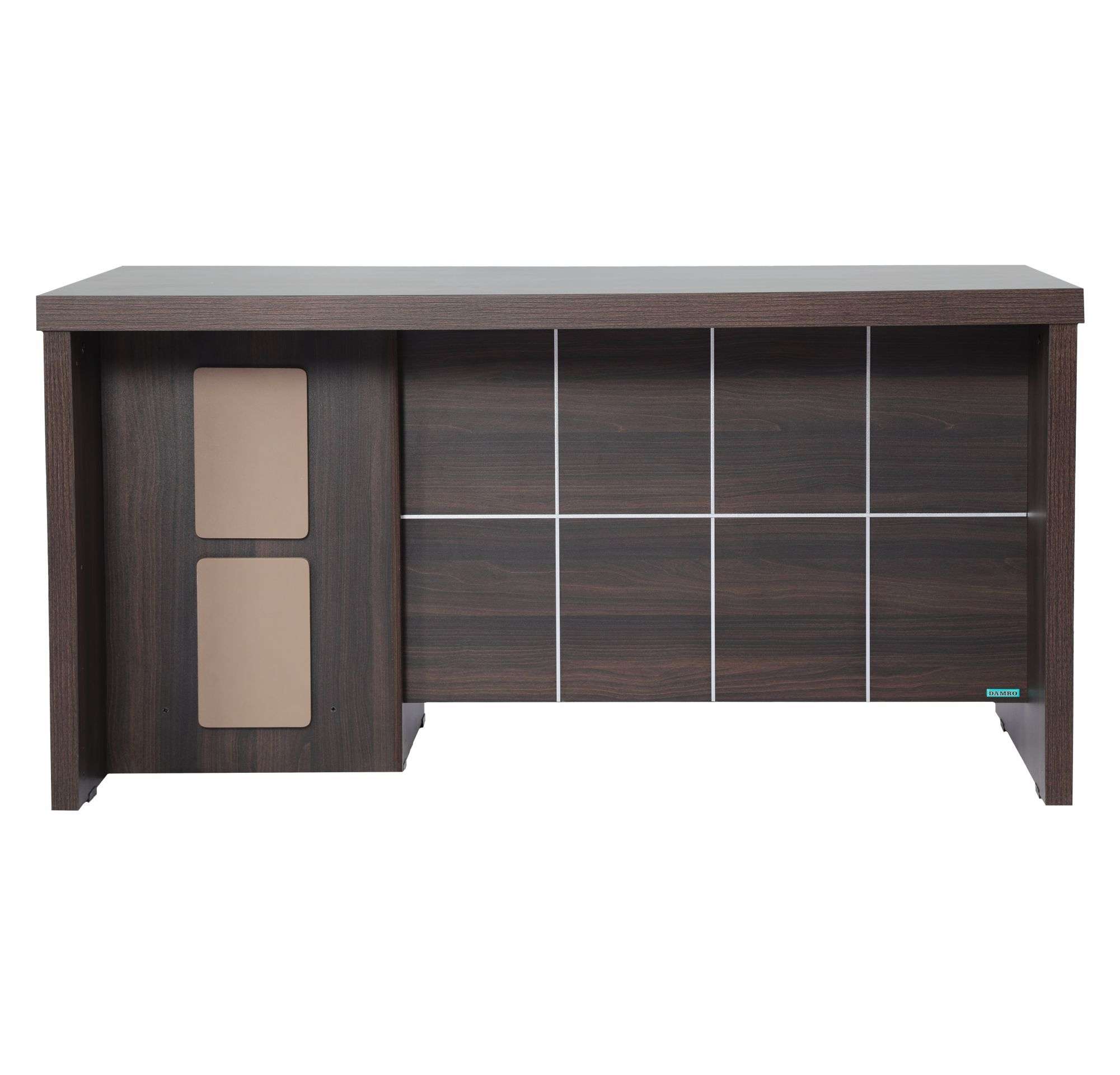Naveen furniture brings you some of the best writing tables with storage online. This attractive executive table is in a contemporary two-tone design. There is ample storage space for your A4 size files, folders and paperwork. The tabletop has protective PVC edges. Along with functionality, this latest executive writing table is also known for its charming style and attractive modesty panel with superior aluminium beading inserts and a decorative add-on panel. Order this office table with storage today!