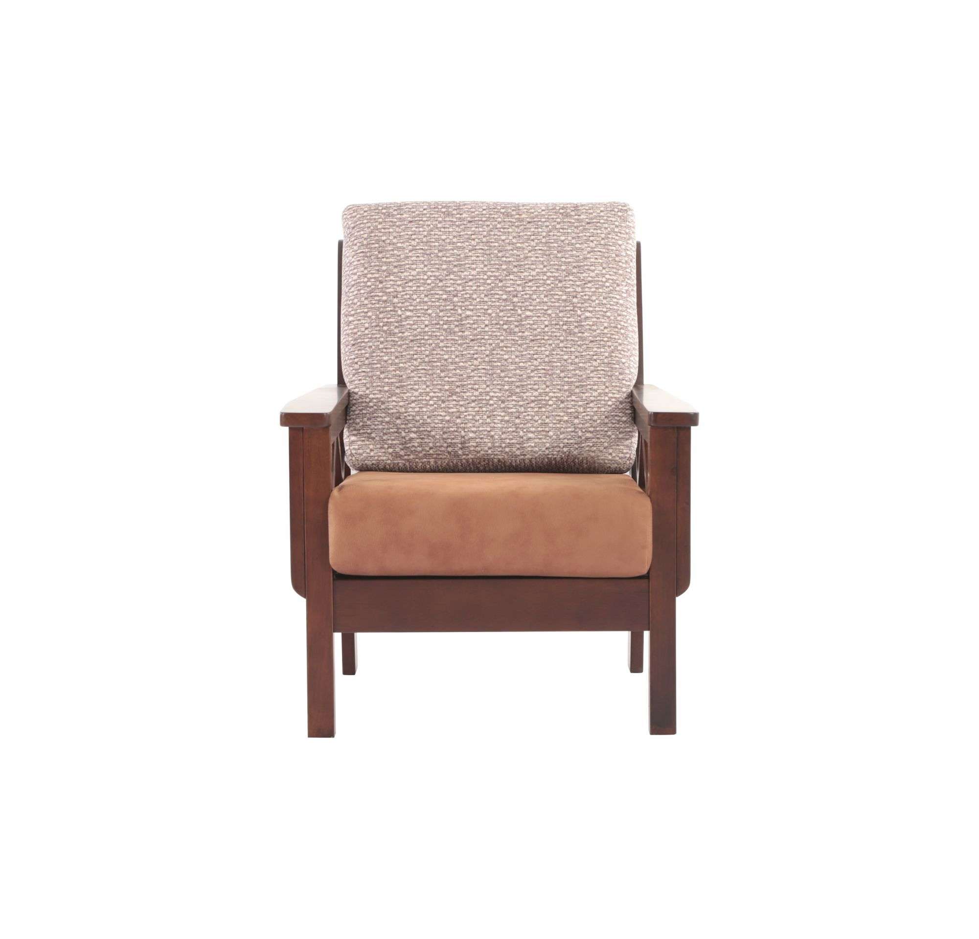 - Comfortable cushioned seating and wooden armrest.