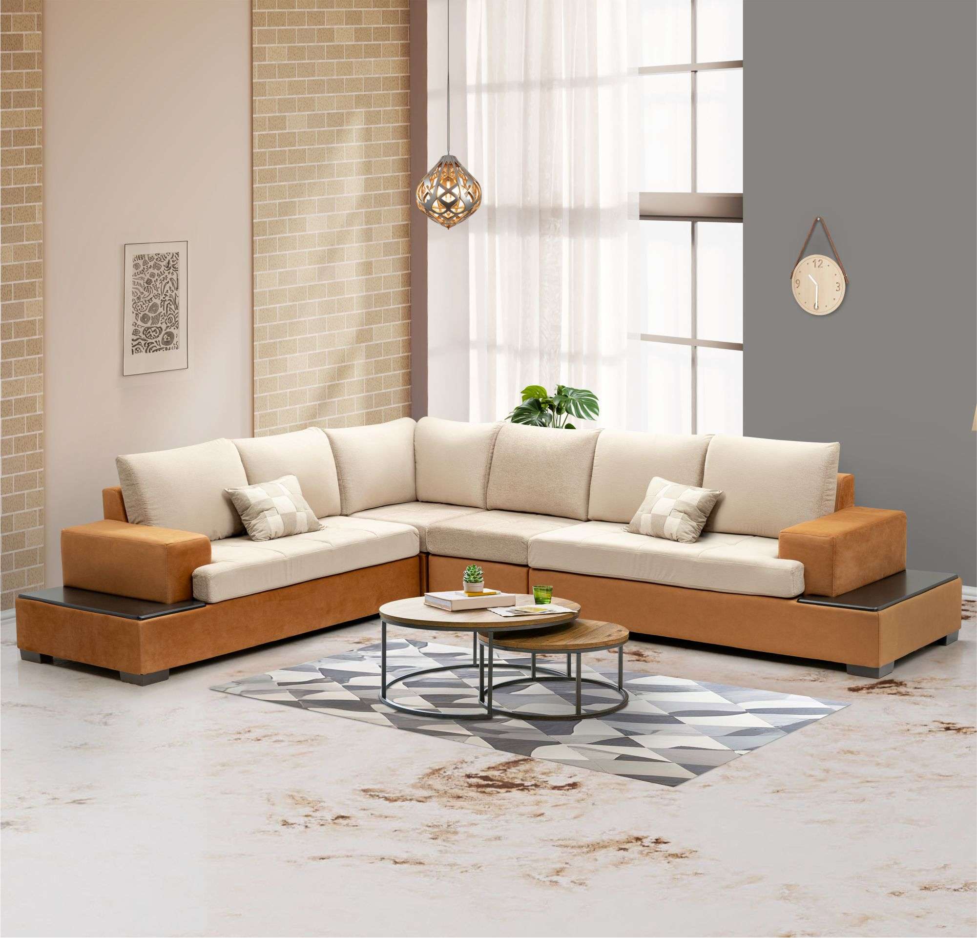 - Treated solid wood corner sofa in L-shape