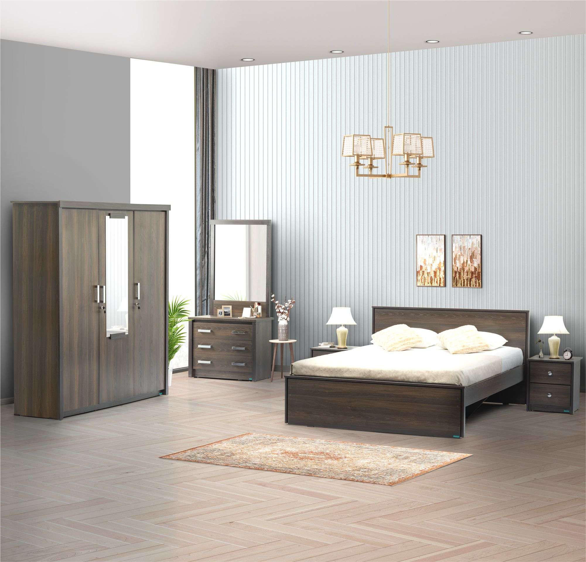 - Four-piece bedroom set in engineered wood