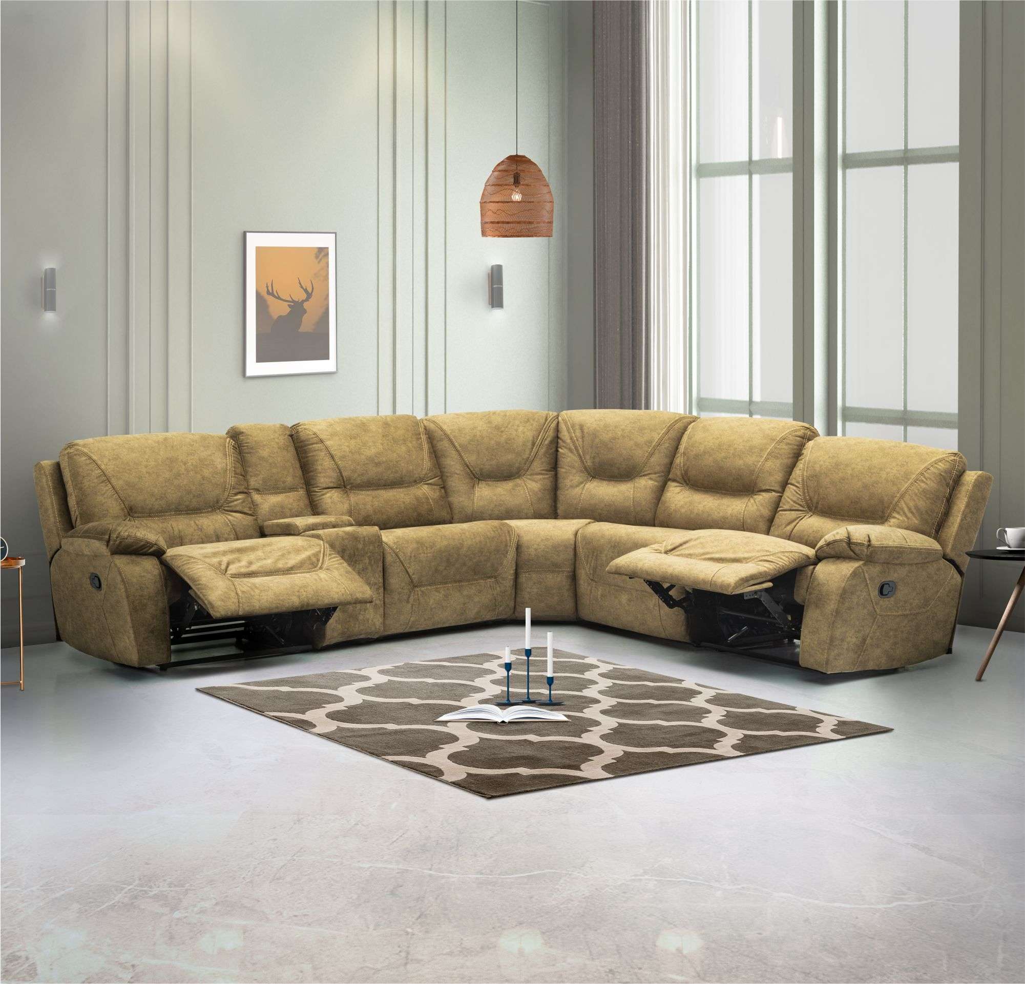 Primary Material : Treated Wood, Polyester Fiber Upholstery, High Density PU & HR Foam Polyester Fiber Filling, Webbing, Zig Zag Springs and Fabric