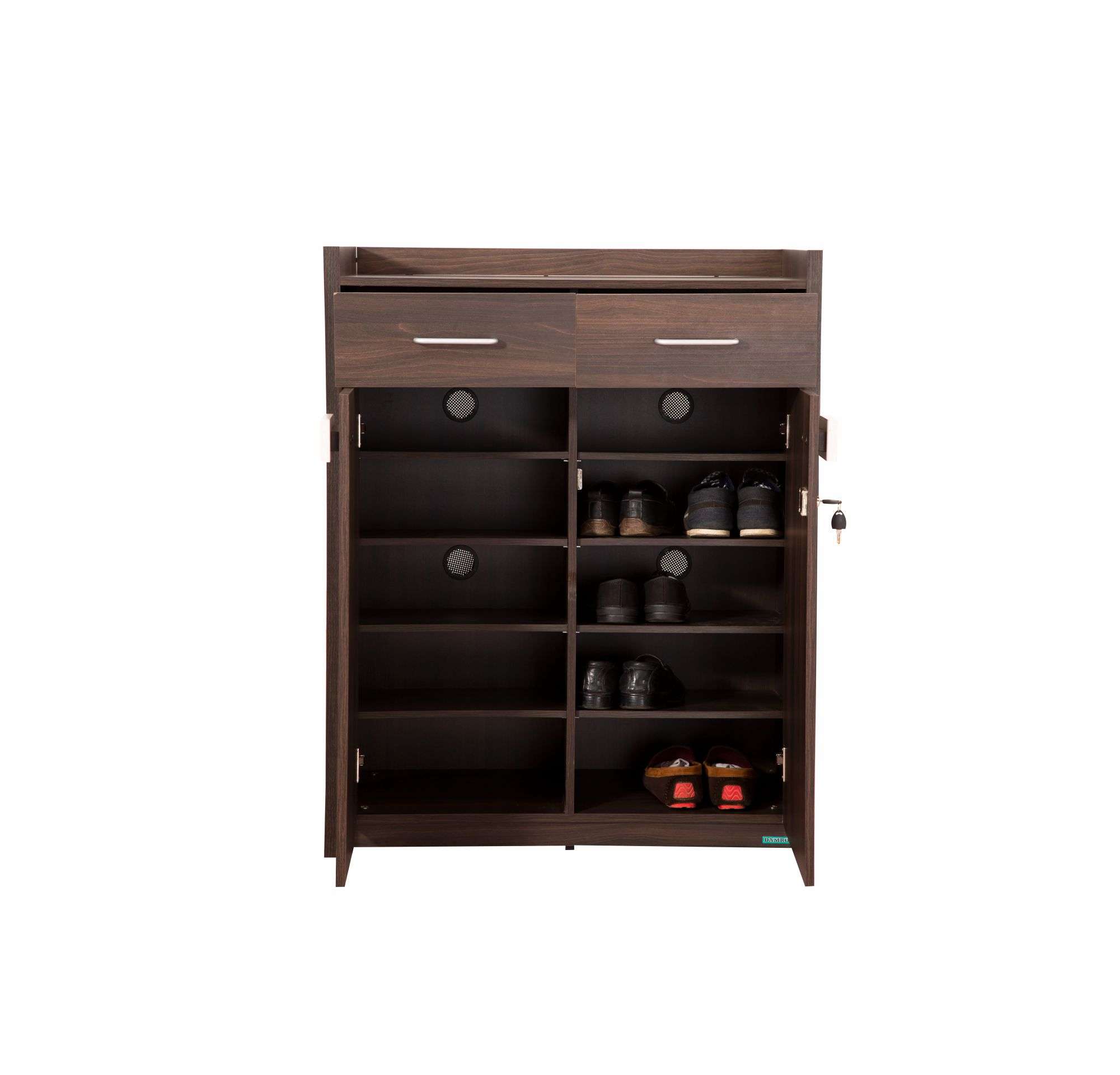 - Two drawers to store footwear accessories, polish and brush