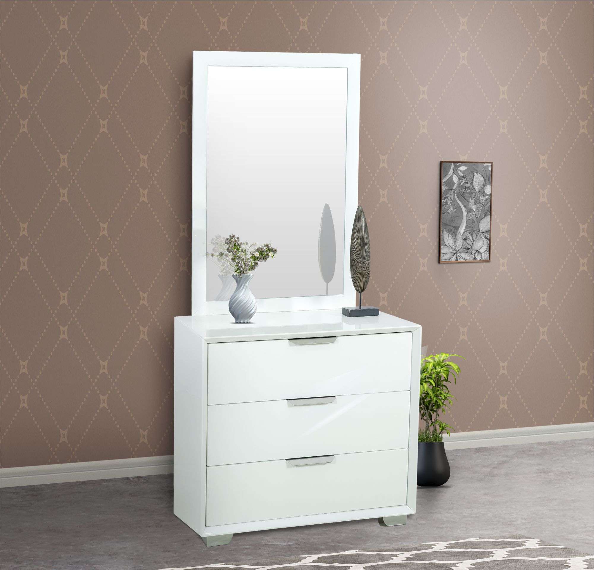Introducing our Rutford Dressing Table, crafted from premium High Gloss Painted MDF. Its very attractive design complements any room, while the user-friendly drawer offers convenient storage. The sturdy construction ensures durability, With ample storage space, this dressing table keeps your belongings organized. The table’s high-gloss finish adds a touch of sophistication to your decor, making it an ideal addition for those seeking a modern and practical solution. Order Now!
