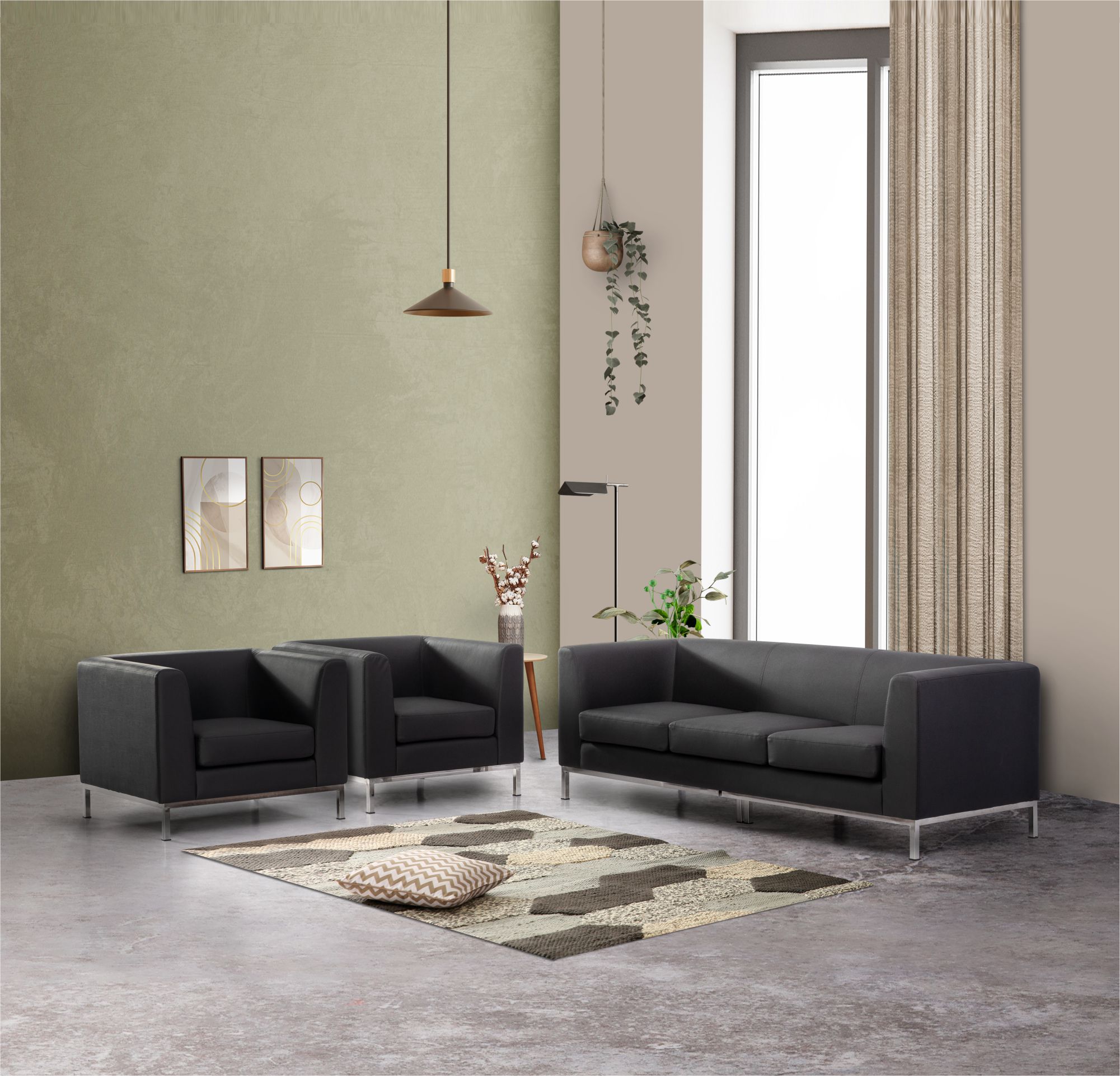 Whether you need elegant office sofas or compact sofa sets for your home, the Sabeena is the right choice. Simple and versatile, it offers a comfortable seating experience, both in a formal office space as well as your living room. This set of three-seater sofas plus two single-seater sofas have ample space underneath, so cleaning and mopping the floor is easy and hassle-free.