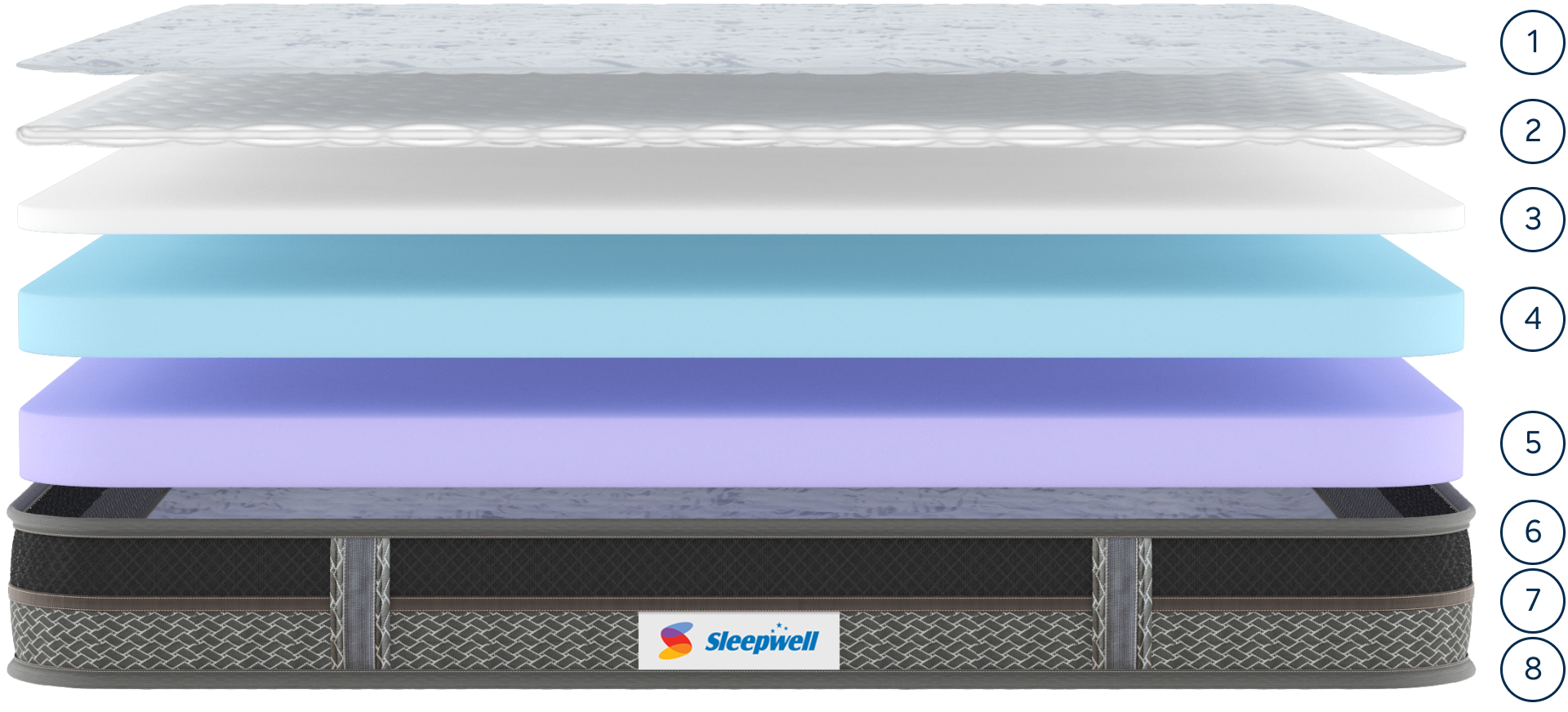 The mattress with a special blend of gentle and cozy with resilient bounce. Sleepwell Resitec® foam’s excellent body support with the contour-hugging softness of Sleepwell Impressions foam and Quiltec® quilting, allows you to wake up revitalized every morning. Engineered side walls with spacer fabric support the edges, prevents sagging, and make sitting more comfortable while ensuring extra ventilation. Premium knitted fabric gives it a smooth touch. The Anti-skid bottom keeps the mattress in a fixed place. Sleepwell Neem Fresche® provides germ protection.