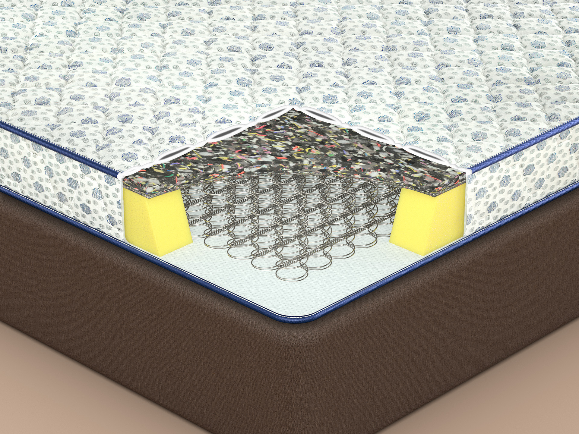 A medium firm ortho-care mattress. The bonnell spring offers optimally firm spinal support while the rebonded foam supports the structure. On top, double layered Sleepwell Quiltec® quilting adds a gentle touch while the Airmesh fabric makes for an airy night of sleep. Foam wall technology prevents sagging and ensure comfortable sitting. Sleepwell Neem Fresche® provides germ protection.