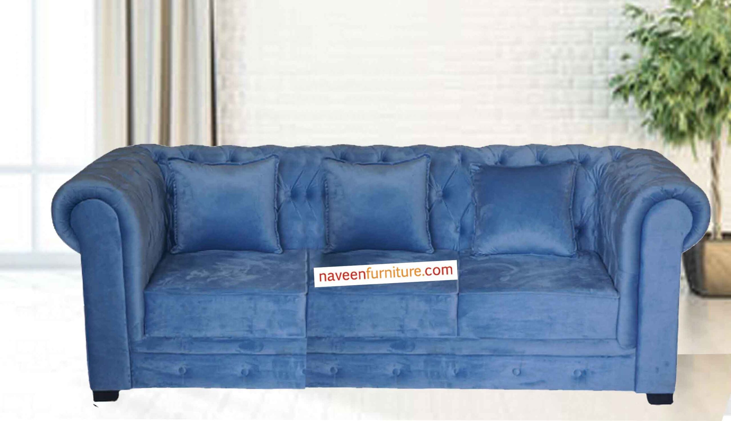 Sofa Chester blue with rich suede fabric and nice tuffted work on it’s back makes it one of hit in our sofa list.
