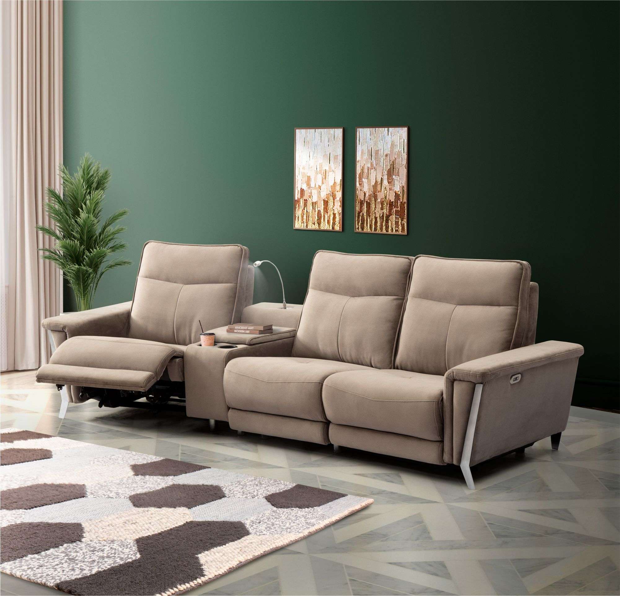Primary Material : Treated solid wood, Zig Zag Spring, HR Foam, Webbing, Polyester Fiber Sheet, Upholstery Fabric, Stainless Steel Leg, High Quality Electric Mechanism & Hinges, Polyfill
